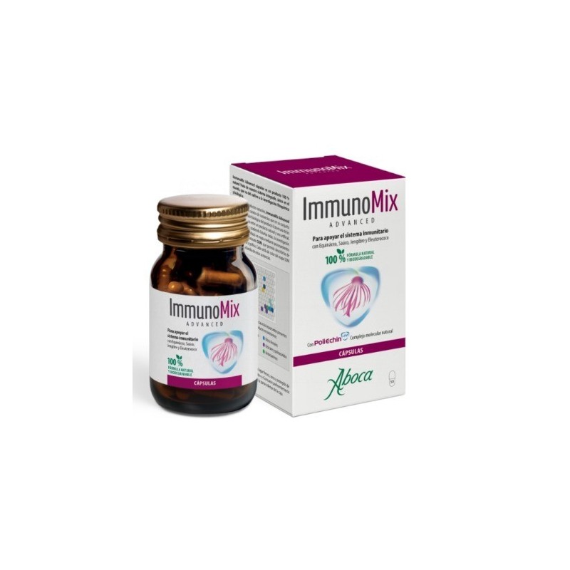 IMMUNOMIX ADVANCED CÁPSULAS APOYA EL SISTEMA INMUNITARIO GRACIAS A LA PRESENCIA DE EQUINÁCEA, SAÚCO, JENGIBRE Y ELEUTEROCOCO, NO SOLO DURANTE EL PERÍODO INVERNAL, SINO EN TODOS LOS CASOS EN LOS QUE ESTE SE ENCUENTRA DEBILITADO.ADEMÁS, EL ELEUTEROCOCO EJERCE UNA ACCIÓN TÓNICA QUE APOYA LAS FUNCIONES FÍSICAS Y MENTALES EN CASO DE DEBILIDAD, AGOTAMIENTO O CANSANCIO Y DURANTE LOS PERÍODOS DE CONVALECENCIA.IMMUNOMIX ADVANCED CÁPSULAS ES UN PRODUCTO 100 % NATURAL FRUTO DE NUESTRO SISTEMA INTEGRADO, ÚNICO EN EL MUNDO, QUE VA DEL CULTIVO A LA INVESTIGACIÓN FITOQUÍMICA Y BIOLÓGICA.