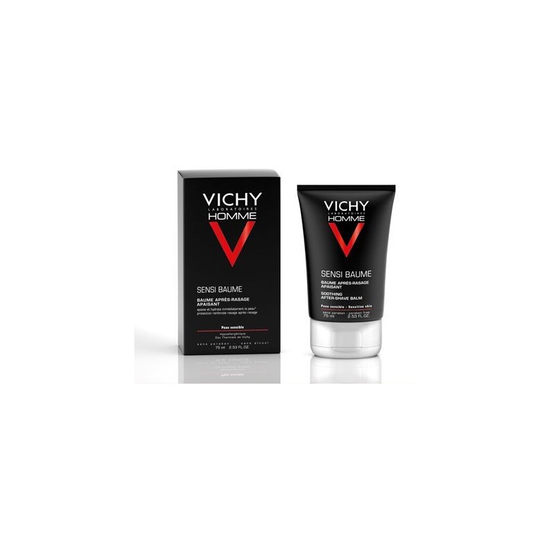Vichy Homme Sensi Baume Bálsamo Confort es un bálsamo fortalecedor formulado especialmente para pieles sensibles tras el afeitado. Es la solución perfecta para combatir las irritacoines y el escozor de la piel tras el afeitado. Enriquecido con Agua Termal de Vichy, sin alcohol y sin perfume.