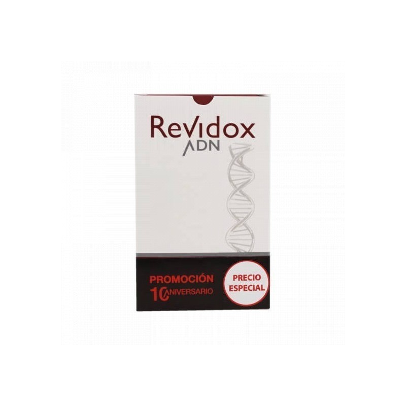 REVIDOX ADN es un complemento alimenticio que posee una fórmula única compuesta por un concentrado de activos, que suponen un claro avance en la protección frente al envejecimiento celular:Extracto de uva, con antocianinas con propiedades antioxidantesResveratrol, polifenol natural con propiedades antioxidantesSelenioRiboflavinaÁcido ascórbicoZincREVIDOX ADN, gracias a su contenido en riboflavina, ácido ascórbico, zinc y selenio, te ayuda a proteger a las células contra el daño oxidativo. Además, el zinc presente en su fórmula contribuye a la formación adecuada del ADN.Ingredientes:125 mg extracto de uva.8 mg resveratrol.125 mg extracto de granada.34 μg (61% VRN) selenio.1,5 mg (15% VRN) zinc.12 mg (15% VRN) vitamina C.1,4 mg (100% VRN) vitamina B2 (riboflavina).VRN Valor de Referencia de Nutrientes.
