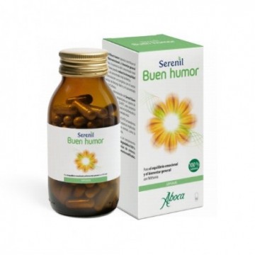 Serenil Buen humor cápsulas contribuye al equilibrio emocional y al bienestar general gracias a la presencia del concentrado total de Withania y ayuda a reducir la intranquilidad gracias al concentrado total de Melisa. Su formulación se completa con el aceite esencial de Naranjo dulce y el concentrado total de Grifonia. Además, la administración de Serenil Buen humor cápsulas proporciona un aporte de 5-hidroxitriptófano (5-HTP), una sustancia presente de forma natural en la Grifonia de la que se obtiene el concentrado total.Dentro del organismo, el 5-HTP se transforma naturalmente en otras sustancias implicadas en el estado de ánimo normal, como la serotonina y la melatonina. Serenil Buen humor es un complemento alimenticio natural y biodegradable al 100 %. No contiene sustancias de síntesis, semisíntesis o genéticamente modificadas.Modo de empleo:Se aconseja tomar 2 cápsulas 2 veces al día, preferiblemente por la mañana y por la noche.ADVERTENCIASNo superar las dosis recomendadas. Los complementos alimenticios no pueden considerarse un sustituto de una dieta variada y equilibrada y deben ser utilizados en el ámbito de un estilo de vida sano. Mantener el producto fuera del alcance de los niños más pequeños.