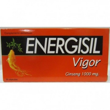 PROPIEDADESEnergisil Ginseng 30 Cápsulas es un complemento alimenticio elaborado a base depolvo de raíz de Panaz Ginseng y Vitaminas. El Ginseng se conoce desde tiempos inmemoriales por sus propiedades beneficiosas para el organismo, ya que posee propiedades energéticas y vigorizantes.MODO DE EMPLEOTomar un comprimido diario preferiblemente antes del desayuno.COMPOSICIÓNPánax ginseng (polvo desecado de raíz ), Vitamina C, Vitamina PP, Vitamina E, Pantotenato cálcico, Vitamina B6, Vitamina B2, Vitamina B1, Vitamina A, Ácido Fólico, Biotina, Vitamina D, Vitamina B12.