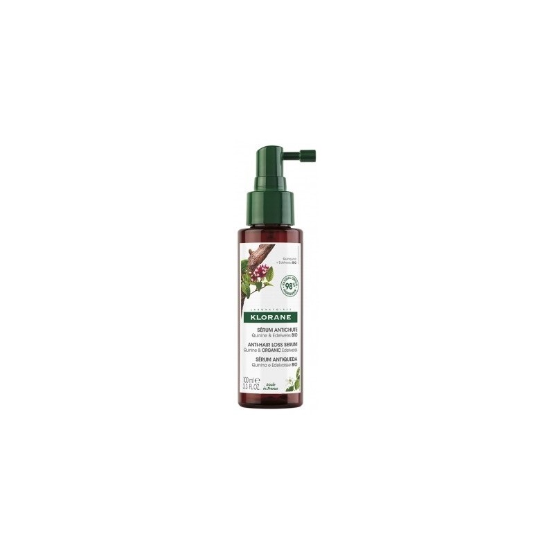 Con cuidados específicos y adaptados, la caída del cabello está lejos de ser una fatalidad.Klorane combina la botánica y la ciencia para proporcionar fuerza al cabello desvitalizado en un cuidado anticaída sin aclarado con complejo único Quinina + Edelweiss BIO. La Quinina frena la caída mientras que el Edelweiss BIO estimula el crecimiento y regula los ciclos del cabello. En formato spray para una vaporización fácil, textura no grasa. Su acción fortificante es inmediata con una eficacia anticaída probada a partir de 1 mes.*98% de ingredientes de origen naturalQuinina Cinchona succirubra Pav. Ex Klotzsch Frena la caídaWATER (AQUA)*. ALCOHOL*. GLYCERIN*. CINCHONA SUCCIRUBRA BARK EXTRACT*. LEONTOPODIUM ALPINUM FLOWER/LEAF EXTRACT*. MANGANESE PCA*. CAFFEINE. BIOTIN. NIACINAMIDE. PANTOLACTONE. MENTHOL. CITRIC ACID*. DIETHYL PHTHALATE. FRAGRANCE (PARFUM). LIMONENE. PANTHENOL. PEG-40 HYDROGENATED CASTOR OIL. POTASSIUM SORBATE. PPG-26-BUTETH-26. PYRIDOXINE HCL. SODIUM BENZOATESe recomienda que el consumidor verifique sistemáticamente la composición del producto antes de comprarlo.Fórmula sin siliconas, sin aceites minerales, sin ingredientes de origen animal.