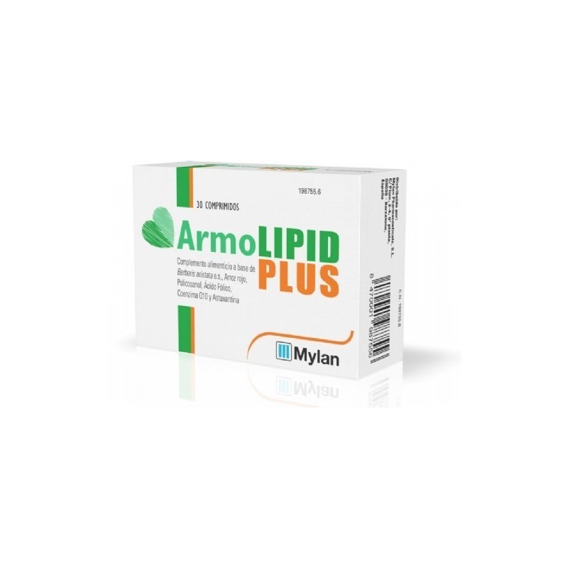 ARMOLIPID PLUS ES UN COMPLEMENTO ALIMENTICIO QUE CONTIENE BERBERIS ARISTATA E. S., ARROZ ROJO FERMENTADO (CON UNA CEPA CONCRETA DE MONASCUS PURPUREUS), POLICOSANOL, ÁCIDO FÓLICO, COENZIMA Q10 Y ASTAXANTINA. EL EXTRACTO SECO OBTENIDO DE LA CORTEZA DE BERBERIS ARISTATA , FAVORECE EL CONTROL DE LOS TRIGLICÉRIDOS, Y AYUDA A CONTROLAR LOS NIVELES DE COLESTEROL PLASMÁTICO, ACOMPAÑADO DE UNA ALIMENTACIÓN ADECUADA PARA ESTE FIN.MODO DE EMPLEOUN COMPRIMIDO AL DÍA. EN CASO DE DIFICULTAD PARA TRAGAR SE PUEDE DIVIDIR EL COMPRIMIDO EN DOS PARTES Y TOMARLAS CON UN VASO DE AGUA.ADVERTENCIASNO SUPERE LA DOSIS DIARIA RECOMENDADA. MANTENER FUERA DE LA VISTA Y ALCANCE DE NIÑOS MENORES DE TRES AÑOS. NO UTILIZAR DURANTE EL EMBARAZO, LA LACTANCIA O EN CASO DE ESTAR SIGUIENDO UN TRATAMIENTO CON FÁRMACOS PARA REDUCIR EL COLESTEROL. SE RECOMIENDA CONSULTAR A SU MÉDICO O FARMACÉUTICO ANTES DE UTILIZAR ESTE PRODUCTO. LOS COMPLEMENTOS ALIMENTICIOS NO ESTÁN PENSADOS COMO SUSTITUTOS DE UNA ALIMENTACIÓN VARIADA Y EQUILIBRADA NI DE UN ESTILO DE VIDA SALUDABLE.COMPOSICIÓN POR COMPRIMIDOUN COMPRIMIDO DE ARMOLIPID PLUS CONTIENE 588 MG DE BERBERIS ARISTATA E. S. (EQUIVALENTE A 500 MG DE BERBERINA CLORURO), 200 MG DE ARROZ ROJO FERMENTADO (EQUIVALENTE A 3 MG DE MONACOLINA K), 10 MG DE POLICOSANOL, 0,2 MG DE ÁCIDO FÓLICO, 2,0 MG DE COENZIMA Q10 Y 0,5 MG DE ASTAXANTINA.VIATRIS PHARMACEUTICALS S. L., C/ GENERAL ARANAL, 86, 28027, MADRID.