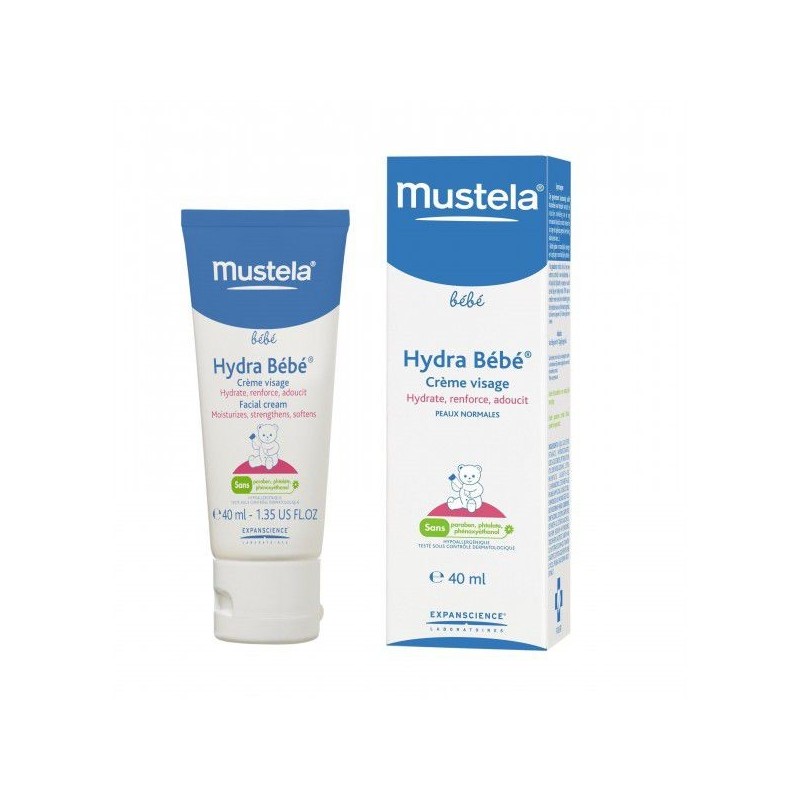 PROPIEDADESMUSTELA HYDRA BEBÉ CARA 40 ML. HIDRATA LA PIEL DE TU BEBE DE MANERA SENCILLA DESDE EL PRIMER DIA DE VIDA, PROTEGE SU CARA DE AGRESIO NES EXTARNAS GRACIAS AL ACEITE DE JOJOBA, EVITA LA SEQUEDAD EN LA CARA GRACIAS AL ACEITE DE ALMENDRAS. HIDRATACIÓN Y CUIDADO EN UNO GRACIAS A MUSTELA.MODO DE EMPLEO PLACER DE UTILIZACIÓN• TEXTURA FLUIDA Y FUNDENTE, IDEAL PARA LA CARA.• DEJA UN OLOR ÚNICO SOBRE LA PIEL.COMPOSICIÓN• PERSEOSE DE AGUACATE, ACTIVO NATURAL PATENTADO: PROTEGE LA BARRERA CUTÁNEA, HIDRATA Y PRESERVA LA RIQUEZA CELULAR DE LA PIEL.• ACEITE DE JOJOBA: HIDRATA• VITAMINA E: PROTEGE LA PIEL DE LAS AGRESIONES EXTERNAS PARA MANTENERLA SUAVE Y FLEXIBLE.• MANTECA DE KARITÉ: SUAVIZA Y PROTEGE LA EPIDERMIS DE LAS AGRESIONES EXTERNAS.