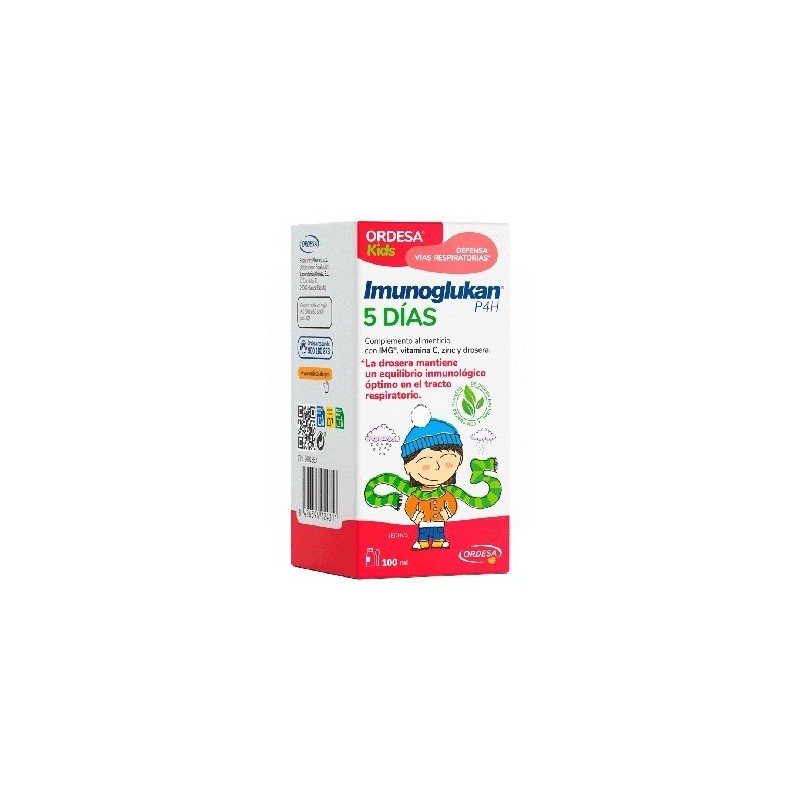 LOS SÍNTOMAS INDICATIVOS DEL INICIO DE UNA INFECCIÓN RESPIRATORIA SON GOTEO NASAL, ESTORNUDOS, GARGANTA SECA E IRRITADA, DOLOR EN LAS CAVIDADES NASALES, TOS, FATIGA, AGOTAMIENTO Y, EN MUCHOS CASOS, TEMPERATURA CORPORAL ELEVADA. SE TRATA DE LOS PRIMEROS SIGNOS QUE NOS ADVIERTEN DE LA PRESENCIA DE UN PROCESO INFECCIOSO. LOS MECANISMOS DE DEFENSA DEL ORGANISMO EMPIEZAN A COMBATIR LA INFECCIÓN Y AUMENTAN SUS DEMANDAS DE ACTIVACIÓN, PROLIFERACIÓN Y MULTIPLICACIÓN DE LAS CÉLULAS DEL SISTEMA INMUNITARIO. EN EL ESTADO AGUDO (P. EJ., INFECCIÓN RESPIRATORIA AGUDA), CRECE LA PRODUCCIÓN DE CÉLULAS INMUNITARIAS Y LA DEMANDA DE VITAMINA C Y ZINC. EN ESTA ETAPA CONVIENE REFORZAR LAS DEFENSAS NATURALES DEL SISTEMA INMUNITARIO.EN ESTAS CIRCUNSTANCIAS, IMUNOGLUKAN P4H® 5 DÍAS RESULTA DE UTILIDAD YA QUE APORTA:IMG®: SUSTANCIA NATURAL ALTAMENTE PURIFICADA, FORMADA POR POLISACÁRIDOS BIOLÓGICAMENTE ACTIVOS AISLADOS DE PLEUROTUS OSTREATUS. LA SEGURIDAD Y LA EFICACIA DEL IMG® SE HAN DEMOSTRADO EN ESTUDIOS Y CASOS CLÍNICOS PUBLICADOS EN LA LITERATURA CIENTÍFICA.VITAMINA C: NO PUEDE SER SINTETIZADA POR EL CUERPO HUMANO, POR LO QUE DEBE OBTENERSE A TRAVÉS DE LOS ALIMENTOS. EL ORGANISMO ABSORBE LA CANTIDAD DE VITAMINA C QUE NECESITA. LA VITAMINA C DESEMPEÑA MUCHAS FUNCIONES IMPORTANTES. ES UN ANTIOXIDANTE QUE PROTEGE LAS CÉLULAS FRENTE AL DAÑO OXIDATIVO. TAMBIÉN CONTRIBUYE AL FUNCIONAMIENTO NORMAL DEL SISTEMA INMUNITARIO Y AYUDA A DISMINUIR EL CANSANCIO Y LA FATIGA.ZINC: OLIGOELEMENTO MINERAL QUE CATALIZA MÁS DE 300 REACCIONES ENZIMÁTICAS Y TIENE UN EFECTO POSITIVO EN EL METABOLISMO CELULAR DE LOS LÍPIDOS, LOS HIDRATOS DE CARBONO Y LAS PROTEÍNAS. PARTICIPA EN LA SÍNTESIS DEL ADN Y EN EL PROCESO DE DIVISIÓN CELULAR. AL IGUAL QUE LA VITAMINA C, EL ZINC TAMBIÉN TIENE UN EFECTO ANTIOXIDANTE Y CONTRIBUYE AL FUNCIONAMIENTO NORMAL DEL SISTEMA INMUNITARIO.SAMBUCUS NIGRA: SUS FLORES, FRUTOS Y HOJAS SE UTILIZAN DE FORMA TRADICIONAL PARA REFORZAR LAS DEFENSAS NATURALES DEL CUERPO ANTE LAS INFECCIONES RESPIRATORIAS AGUDAS. GRACIAS A LA ACTIVIDAD ANTIOXIDANTE DE SUS INGREDIENTES ACTIVOS, REDUCE EL DAÑO CELULAR CAUSADO POR LOS RADICALES LIBRES.RIBES NIGRUM: SUS HOJAS, FRUTOS Y SEMILLAS CONTIENEN DIVERSAS SUSTANCIAS ACTIVAS QUE, AL IGUAL QUE SAMBUCUS NIGRA, TIENEN PROPIEDADES ANTIOXIDANTES Y CONTRIBUYEN AL FUNCIONAMIENTO NORMAL DEL SISTEMA INMUNITARIO.DROSERA ROTUNDIFOLIA: SU EXTRACTO VEGETAL SE UTILIZA TRADICIONALMENTE PARA REFORZAR EL SISTEMA INMUNITARIO Y LA SALUD DEL APARATO RESPIRATORIO.SISYMBRIUM OFFICINALE: SU EXTRACTO VEGETAL FAVORECE EL EFECTO DE LOS COMPONENTES ANTERIORES, SOBRE TODO EN LA TOS SECA, Y, EN GENERAL, AYUDA A MANTENER LA SALUD DE LAS VÍAS RESPIRATORIAS.IMG®, LA VITAMINA C, EL ZINC Y LOS EXTRACTOS VEGETALES DE IMUNOGLUKAN P4H® 5 DÍAS ACTÚAN DE FORMA SINÉRGICA, ES DECIR, SU INTERACCIÓN MULTIPLICA LA POTENCIA DE CADA COMPONENTE.INGREDIENTESAGUA, FRUCTOSA, DROSERA (DROSERA ROTUNDIFOLIA)- EXTRACTO VEGETAL, SAÚCO (SAMBUCUS NIGRA) – ZUMO DE FRUTAS, IMG® (POLISACÁRIDOS DE BETA-1,3/1,6-D-GLUCANO PROCEDENTES DE PLEUROTUS OSTREATUS), ERÍSIMO (SISYBIRUM OFFICINALE) – EXTRACTO VEGETAL, GROSELLERO NEGRO (RIBES NIGRUM) – ZUMO DE FRUTAS, ACIDULANTE (ÁCIDO CÍTRICO), ÁCIDO L-ASCÓRBICO (VITAMINA C), BISGLICINATO DE ZINC, CONSERVADOR (SORBATO DE POTASIO), ESPESANTE (CARBOXIMETILCELULOSA DE SODIO).