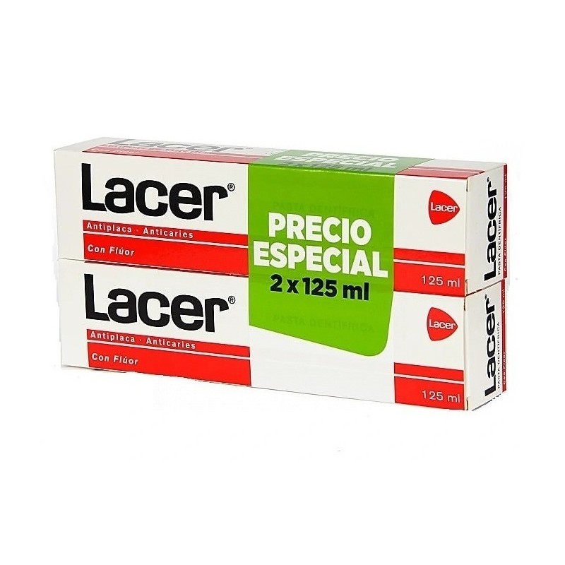 Lacer pasta dentífrica contiene 2.500 ppm de ion fluoruro, previene la placa bacteriana (antiplaca), combate la flora causante de la caries y refuerza el esmalte y la dentina proporcionando una protección integral de tu boca.IngredientesAqua, Calcium Carbonate, Glycerin, Hydrogenated Starch Hydrolysate, Sodium Monofluorophosphate, Algin, Magnesium Aluminum Silicate, Titanium Dioxide, Sodium Lauryl Sulfate, Aroma, Urea, Sodium Saccharin, Menthol, Tetrasodium Pyrophosphate, Methyl Salicylate, Vanillin, Limonene.