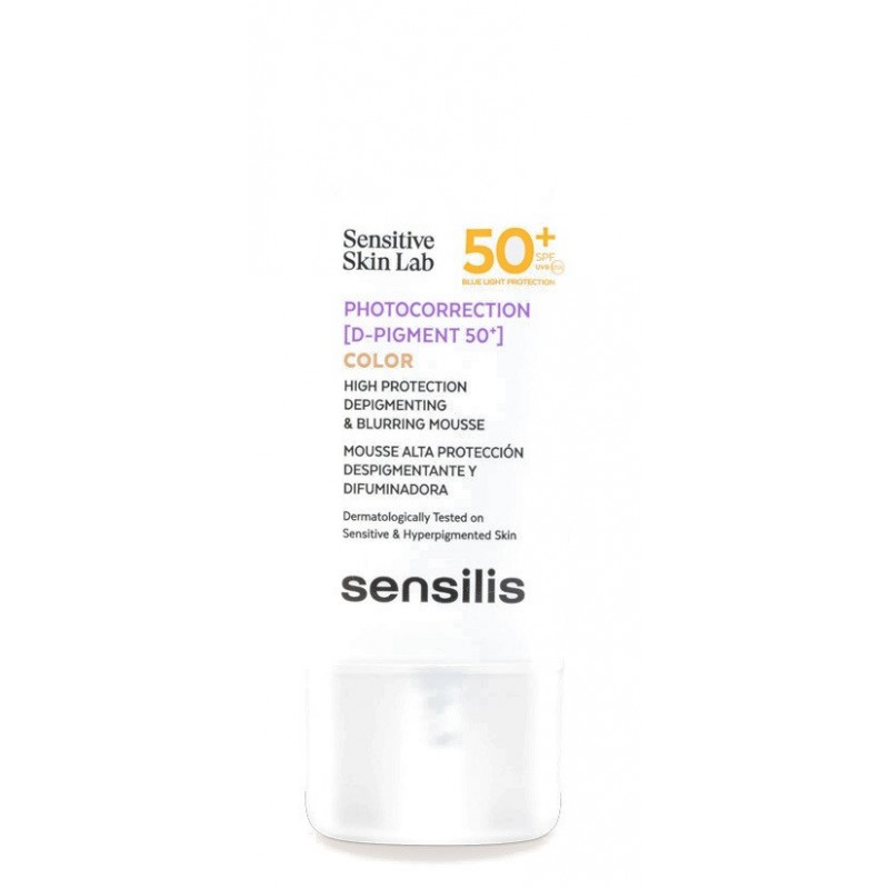 La primera mousse con SPF50+ que protege frente al UVA, UVB y la luz azul y corrige manchas en pieles sensibles hiperpigmentadas de cualquier edad.Photocorrection [D-PIGMENT 50+] ofrece una experiencia placentera gracias a su textura mousse anhidra con color y al suave perfume floral y afrutado para una sensación todavía más agradable.INGREDIENTESC12-15 Alkyl Benzoate, Dimethicone, Diethylamino Hydroxybenzoyl Hexyl Benzoate, Dimethicone Crosspolymer, Ethylhexyl Salicylate, Diethylhexyl Butamido Triazone, Bis-Ethylhexyloxyphenol Methoxyphenyl Triazine, Silica, Silica Dimethyl Silylate, Ascorbyl Tetraisopalmitate, Tocopheryl Acetate, Physalis Angulata Extract, Caprylic/Capric Triglyceride, Sclareolide, Lysine, Tocopherol, Aluminum Hydroxide, Sodium Lauroyl Glutamate, Magnesium Chloride, CI 77891 (Titanium Dioxide), CI 77492 (Iron Oxides), CI 77491 (Iron Oxides), CI 77499 (Iron Oxides), Parfum (Fragrance).