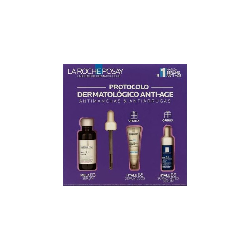 Beneficios la roche-posay protocolo antimanchas mela b3 unifica el tono y mejora el aspecto de las manchas gracias a melasyl y niacinamida (b3). Este cofre incluye dos regalos que completan la rutina: hyalu b5 ojos 5 ml y hyalu b5 sérum suractivated 10 ml para hidratar y reforzar la barrera de la piel. Para pieles con manchas, marcas postinflamatorias o tono irregular que buscan un protocolo antimanchas con alta tolerancia. Ideal si quieres sumar hidratación y contorno de ojos de regalo a tu rutina.