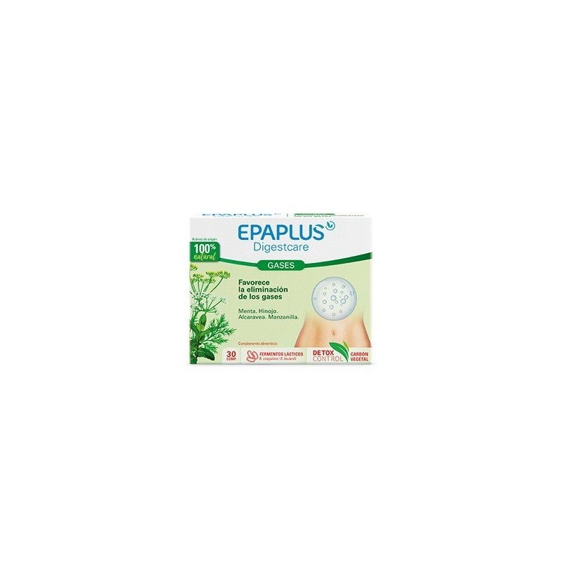 Complemento alimenticio a base de extractos naturales, carbón vegetal, fermentos lácticos y vitaminas.