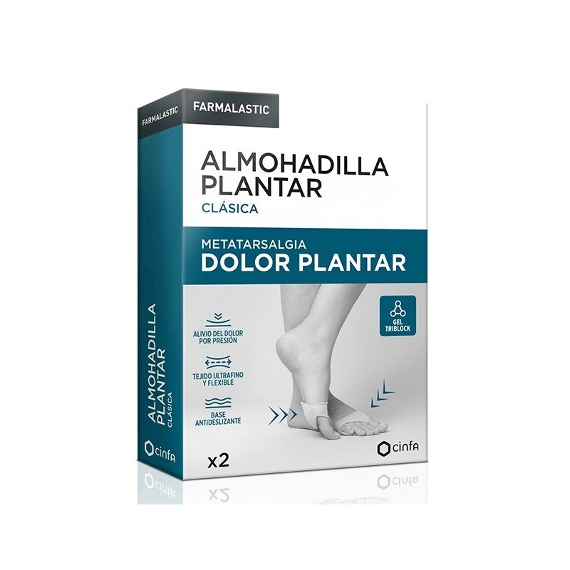 La Almohadilla Plantar, para adultos, está indicada para personas que tienen dolor plantar en el antepié, debido al desgaste natural de la almohadilla plantar, o durezas. Ayuda a aliviar los dolores plantares y la sensación de recalentamiento. Evita la formación de durezas y callosidades. La Almohadilla Plantar de Gel Triblock recubierto por un agradable tejido ultrafino, suave y flexible que le aporta elasticidad para adaptarse al pie. El gel fluye en todas las direcciones limitando el movimiento relativo de la piel ante el roce provocado por el calzado o calcetín. Diseño ergonómico, que facilita su colocación y base antideslizante para evitar que se mueva. Se puede reutilizar. Apta para utilizar con calcetines, medias y calzado habitual.