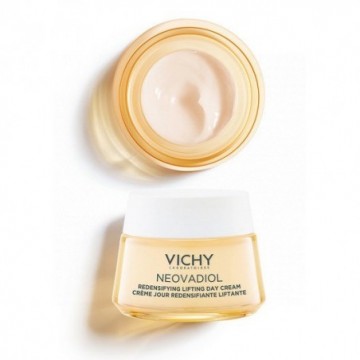 En la peri-menopausia, las variaciones hormonales aceleran los signos del envejecimiento y secan la piel, quietándole la elasticidad y firmeza natural. La densidad y definición del contorno facial son otras de las causas del envejecimiento y, que a nivel visual, afectan mucho a la piel, provocando una apariencia cansada y marcada por arrugas.Mejora el aspecto de tu piel gracias a la Crema de Día Reafirmante y Redensificante para pieles secas, gracias a su composición con ácido hialurónico que rellena las arrugas, proxylane y extracto de cassia que mejora visiblemente los signos de envejecimiento provocados por los cambios hormonales.Mecanismos antiedad en Neovadiol crema reafirmanteUna potente combinación que hidrata hasta las pieles más secas y mejora la densidad que las hormonas provocadas en tu rostro por la menopausia.Descubre esta potente crema que no solo mejorá la apariencia de tu piel, sino que además aliviará esa molesta sensación de piel seca y sin brillo.NEOVADIOL CREMA DE DÍA REAFIRMANTE Y REDENSIFICANTE reactiva los mecanismos de la piel: elasticidad, firmeza, sequedad.La eficacia es nuestra prioridad en Vichy y, por eso, las fórmulas han sido clínicamente puntuadas por dermatólogos en mujeres con piel sensible durante la menopausia. APLICACIÓNAplicar por la mañana en el rostro, la mandíbula y el cuello, evitando el contorno de los ojos. COMPOSICIÓN AQUA /WATER / EAU - PRUNUS ARMENIACA KERNEL OIL / APRICOT KERNEL OIL - DIMETHICONE - GLYCERIN - HYDROXYPROPYL TETRAHYDROPYRANTRIOL - ZEA MAYS STARCH / CORN STARCH - ALCOHOL DENAT - PROPANEDIOL - PROPYLENE GLYCOL - STEARICACID - ORYZA SATIVA BRAN OIL / RICE BRAN OIL - BUTYROSPERMUM PARKII BUTTER / SHEA BUTTER - ISOHEXADECANE - PALMITIC ACID - PEG-100 STEARATE - PEG-20 STEARATE - STEARYL ALCOHOL - GLYCERYL STEARATE - CERAALBA / BEESWAX / CIRE DABEILLE - HYDROXYETHYLPIPERAZINE ETHANE SULFONIC ACID - CI 15985 / YELLOW 6 - CI 77891 / TITANIUM DIOXIDE - SORBITAN OLEATE - NIACINAMIDE - DIMETHICONOL - MYRISTIC ACID - SODIUM HYALURONATE - ADENOSINE - CAPRYLYL GLYCOL - CAPRYLOYL SALICYLIC ACID - CITRIC ACID - CASSIA ANGUSTIFOLIA SEED POLYSACCHARIDE - TRISODIUM ETHYLENEDIAMINE DISUCCINATE - SYNTHETIC FLUORPHLOGOPITE - PENTAERYTHRITYL TETRA-DI-T-BUTYL HYDROXYHYDROCINNAMATE - ACRYLAMIDE/SODIUM ACRYLOYLDIMETHYLTAURATE COPOLYMER - POLYSORBATE 80 - PARFUM / FRAGRANCE.