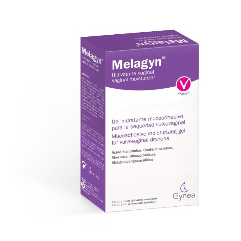 Melagyn® Hidratante vaginal es un gel mucoadherente, no hormonal, que hidrata y favorece la recuperación de la flexibilidad y elasticidad de la mucosa vaginalPuede utilizarse siempre que exista sequedad, como ocurre durante la menopausia, el postparto, la lactancia o durante el último periodo del ciclo menstrual, tras una intervención quirúrgica en la zona, en tratamientos de quimioterapia y radioterapia, por la toma de anticonceptivos orales u otros medicamentos, durante épocas de estrés, en caso de utilizar jabones no específicos, perfumes o desodorantes que causen sensibilidad, así como por el uso de ropa sintética o ajustada.Composición:Melagyn® Hidratante vaginal es un gel mucoadhesivo no hormonal, con una fórmula innovadora que contiene: Ácido hialurónico, Centella asiática, Aloe Vera, Glucoproteina, y Alfa-glucoligosacáridos.MPCTM (Milk Protein Complex) + Centella asiática: efecto regenerador.Ácido hialurónico: extra hidratación.Aloe vera: hidrata la mucosa vaginal.α-GOS (prebiótico): mantiene el equilibrio de la flora vaginal.Ácido láctico: mantiene el pH vaginal adecuado.Triple adherencia Policarbófilo + Chitosan + Fucogel®Modo de empleo:Aplicación vaginal de 2,5 gramos 2 veces por semana. Puede utilizarse diariamente en caso de necesidad.Puede aplicarse en la zona vulvoperineal en caso de sequedad vulvar.Testado ginecológicamente