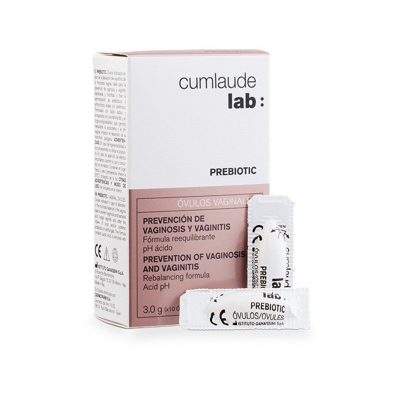 Óvulos indicados en caso de alteración del equilibrio de la microbiota vaginal. Ideales para la prevención de vaginosis y vaginitis bacterianas y micóticas, y tras la administración de antibióticos o antimicóticos locales y/o sistémicos. Formulados con ácido láctico y enriquecidos con provitamina B5 y α-gluco-oligosacáridos, que permiten reequilibrar el ecosistema y el pH vaginal, limitando el desarrollo de la microflora patógena. Dermatológica y ginecológicamente testados.PRODUCTO SANITARIO 0477Indicados en la prevención de vaginosis y vaginitis bacterianas y micóticas recurrentes y alteraciones del equilibrio de la flora vaginal.¿Cómo aplicar este producto?Se recomienda 1 óvulo al día (preferiblemente por la noche) tras un cuidadoso lavado con Cumlaude Higiene Íntima CLX, durante 10 días o según consejo del médico.Hydrogenated Cocoglycerides, Propylene Glycol, Alpha-Glucan Oligosaccharide, Panthenyl Triacetate, PEG-7 Glyceryl Cocoate, Triacontanyl PVP, Laureth-9, Lactic Acid, Glycyrrhetinic Acid, Aqua (Water).