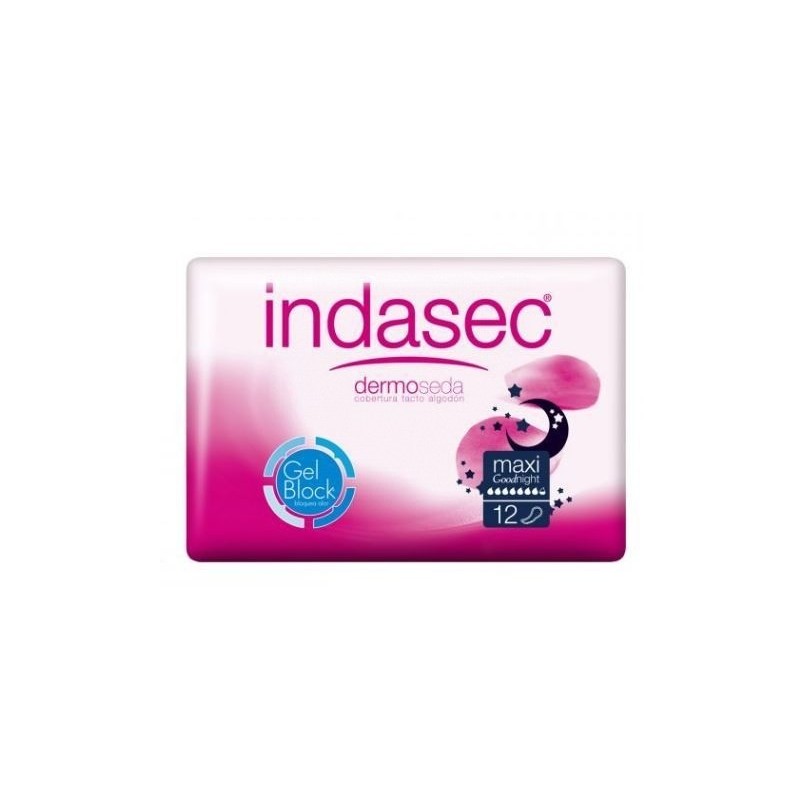 Indasec® Maxi Good Night es la compresa diseñada específicamente para ofrecer la seguridad extra que la noche requiere. Una garantía para el descanso.Se adapta perfectamente a tu ropa interior y ofrece la mayor seguridad y control del olor para que no tengas que preocuparte por nada. Además tienes la garantía de total ausencia de fugas por su capacidad de absorción y retención y todos los beneficios Indasec®:Dermoprotect®. Triple cuidado y mayor protección para tu piel, con una exclusiva emulsión de ingredientes naturales seleccionados. Grosella Negra, Aloe Vera y Extracto de Ambiaty.Controlsec®. Indasec® garantiza la máxima eficacia para neutralizar el olor.Dermoseda®. Cobertura tacto de algodón que garantiza una mayor suavidad.Más cómoda. Gracias a la forma anatómica de la compresa, Indasec®, es más confortable y discreta.Nuevo diseño. Indasec® incorpora un nuevo diseño más femenina y personal.