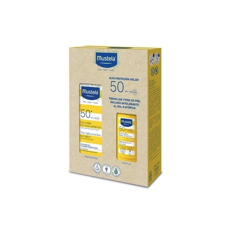LA LECHE SOLAR DEL PACK DE MUSTELA SE ENCUENTRA FORMULADO POR AGUACATE BIO QUE NOS AYUDA A PROTEGERNOS DE LA RADIACIÓN DEL SOL COMO SON LOS RAYOS UVA Y UVB, ADECUADO PARA TODOS LOS MIEMBROS DE LA FAMILIA Y PARA PERSONAS QUE PADECEN DE PIEL ATÓPICA. SE ENCUENTRA FORMULADO POR UNA MEZCLA DE FILTROS QUÍMICOS Y FÍSICOS QUE NOS GARANTIZAN UNA ALTA PROTECCIÓN CUTÁNEA ADAPTADA A LA PIEL DE LOS BEBÉS Y NIÑOS E INCLUSO LAS PIELES SECAS CON TENDENCIA ATÓPICA O INTOLERANTES AL SOL. SE ENCUENTRA ELABORADO SIN PERFUMES, SIN ALCOHOL, PARABENOS, SIN OCTOCRYLENE Y SIN NANOPARTÍCULAS, ELIMINANDO LOS ELEMENTOS QUÍMICOS PERJUDICIALES PARA NUESTRA PIEL. ESTÁ ENRIQUECIDO CON PÉPTIDOS DE AGUACATE QUE NOS AYUDA A PROPORCIONARNOS UNA ALTA PROTECCIÓN CUTÁNEA FORTALECIENDO NUESTRA PIEL FRENTE A LOS RAYOS SOLARES. EL STICK SOLAR NOS AYUDA A PROTEGER ZONAS FOCALIZADAS DE NUESTRA PIEL Y EL ROSTRO DE LOS RAYOS NOCIVOS DEL SOL. SE ENCUENTRA FORMULADO CON ACEITE DE AGUACATE QUE NOS APORTA UNA ALTA PROTECCIÓN EN ZONAS LOCALIZADAS COMO EL ROSTRO Y EL CUERPO FRENTE A LOS RAYOS UVB Y UVA, PROTEGIENDO LAS ZONAS MÁS DELICADAS COMO SON PÓMULOS, LABIOS, OREJAS O LUNARES. ESTE PRODUCTO PUEDE SER UTILIZADO EN NUESTRO DÍA A DÍA, ES ADECUADO PARA TODOS LOS MIEMBROS DE LA FAMILIA HASTA NIÑOS Y BEBÉS COMO PERSONAS CON PIEL ATÓPICA. TIENE UNA TEXTURA ULTRA SENSORIAL CON UN ACABADO INVISIBLE, SIENDO DE FÁCIL APLICACIÓN, ABSORCIÓN Y SIN DEJAR RESTOS DE SUCIEDAD.