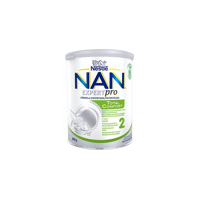 NAN® TOTAL CONFORT 2 es un alimento para usos médicos especiales, especialmente diseñado para el manejo de trastornos digestivos leves tales como cólicos o estreñimiento.- NAN® TOTAL CONFORT 2 es una leche de fórmula nutricionalmente completa y adecuada como única fuente alimenticia para lactantes hasta los 6 meses de edad. Es una leche anticólicos y antiestreñimiento que aporta a tu bebé todos los nutrientes esenciales para su desarrollo físico y mental.- NAN® TOTAL CONFORT 2 contiene una combinación única de ingredientes activos los cuales ayudan a mejorar significativamente los síntomas relacionados con trastornos digestivos como estreñimiento o cólicos entre otras molestias, aliviando el sistema digestivo aún inmaduro de tu bebé.Con proteínas séricas parcialmente hidrolizadas, obtenidas a través de un proceso único, que facilitan la digestión. Además, reducen considerablemente el riesgo de alergia a la proteína de la leche de vaca durante estos primeros años de vida tan importantes, y como resultado clínicamente demostrado, el riesgo de desarrollar una dermatitis atópica.Con L. Reuteri: naturalmente presente en la leche materna, indicado para el manejo del estreñimiento y cólicos.Con GOS y FOS: fibras solubles indicadas para el estreñimiento.Contenido reducido en lactosa: contiene un 33% menos de lactosa que una leche de inicio NAN.Leche de fórmula para el estreñimiento y cólicos sin aceite de palma.