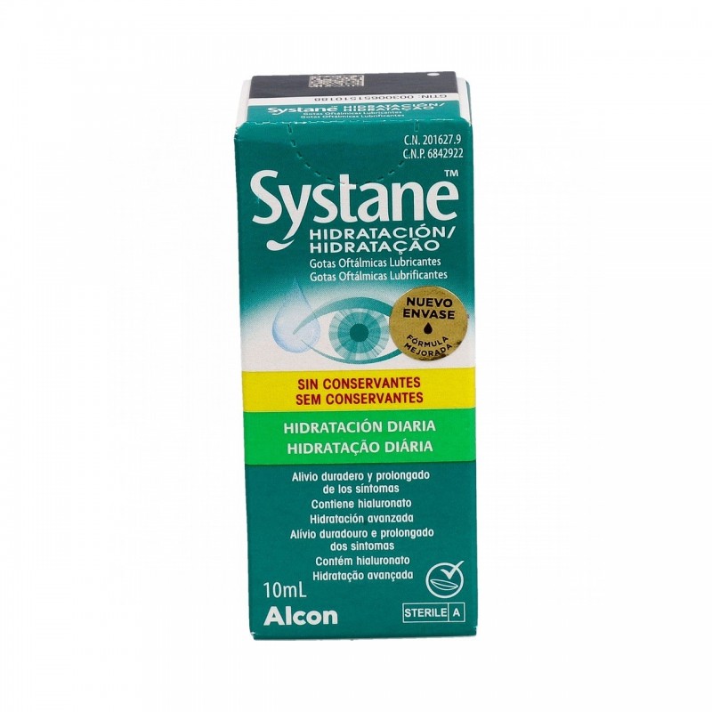 Alivio temporal del escozor y de la irritación debidos a la sequedad ocular. Se puede usar para lubricar y rehidratar diaramente lentes de contacto blandas (hidrofílicas) y de hidrogel de silicona. Marcado CE. ON: 0123. Clase IIb, estéril.Sujete el frasco justo por debajo del tapón y gire el tapón para abrirlo. Antes del primer uso, mantenga el frasco en un ángulo de aproximadamente 90 grados y dispense una gota de producto para descartarla. Agite el frasco boca abajo para eliminar los restos de producto. Se puede utilizar tantas veces como sea necesario durante el día. Aplíquese 1 o 2 gotas en los ojos afectados según sea necesario y parpadee. Mientras lleve lentes de contacto, ante una pequeña irritación, molestia o escozor, aplique 1 o 2 gotas en el ojo u ojos afectados y parpadee 2 o 3 veces. También se puede aplicar antes y después de usar lentes de contacto. Después de su uso, antes de cerrar el tapón del frasco, agítelo boca abajo para eliminar los restos de producto que pudieran quedar en la punta. Cierre el frasco.Agua purificada, hialuronato de sodio, polietilenglicol 400, propilenglicol, hidroxipropil guar, sorbitol, aminometilpropanol, ácido bórico, borato de sodio, cloruro de potasio y cloruro de sodio.Si nota molestias oculares persistentes, lagrimeo excesivo, cambios en la visión o enrojecimiento ocular, deje de utilizarlo y consulte al profesional de la visión ya que el problema podría empeorar. No está indicado para su uso como limpiador o desinfectante de lentes de contacto. No sumerja ni desinfecte sus lentes en en este producto. Puede aparecer visión borrosa transitoria y otras alteraciones visuales que pueden afectar la capacidad de conducir o utilizar máquinas. Si aparece visión borrosa después de la aplicación, espere hasta que la visión sea nítida antes de conducir o utilizar máquinas. Solo para uso oftálmico. No usar si el precinto del tapón está dañado o falta. No utilizar si el envase o el frasco están dañados (envase estéril). Para evitar una posible contaminación, no tocar ninguna superficie con la punta del cuentagotas. Si se ingiere, solicitar ayuda médica. No usar si la solución cambia de color o se vuelve turbia. Tapar el frasco después de su uso. Mantener el frasco bien cerrado cuando no se utilice. Este producto contiene un nivel seguro de ácido bórico y borato de sodio si se utiliza según las instrucciones de la etiqueta. Utilizar antes de la fecha de caducidad indicada en el producto. Mantener fuera del alcance de los niños. Si nota molestias oculares persistentes, lagrimeo excesivo, cambios en la visión o enrojecimiento ocular, deje de utilizar Systane Hidratación Gotas Oftálmicas Lubricantes sin conservantes y consulte al profesional de la visión ya que el problema podría empeorar.