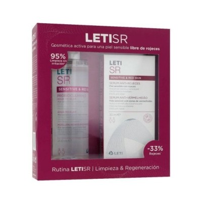Este pack con precio especial es ideal para personas que buscan tratar con delicadeza la sensible con rojeces, es el dúo perfecto de higiene y reparación para las pieles dañadas, así mismo, disminuye y elimina la sensación de incomodidad. Leti sr probioclean h²o 200 ml: agua micelar que limpia en profundidad cara y ojos. Tiene un un alto poder de arrastre sin irritar, aporta una sensación de frescor inmediato y un efecto calmante. Leti sr sérum anti-rojeces 30 ml: fórmula concentrada y con activos ultra-reparadores. Redensificador cutáneo con fecto anti-edad, ideal para el cuidado diario de la piel sensible con rojeces.