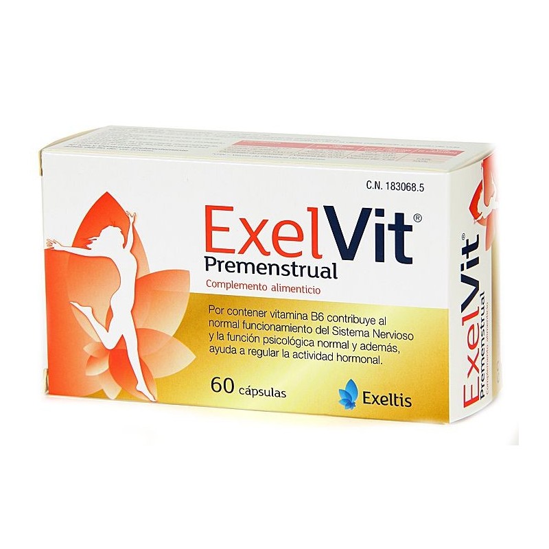 EXELVIT PREMENSTRUAL- CONTIENE NUTRIENTES ESPECÍFICOS PARA ALIVIAR LA APARICIÓN DE SÍNTOMAS DEL SÍNDROME PREMENSTRUAL.- AYUDA A MEJORAR EL ESTADO DE ÁNIMO, DISMINUYENDO CONSIDERABLEMENTE LA IRRITABILIDAD.- REDUCE LA TENSIÓN MAMARIA, CONTROLANDO LA RETENCIÓN DE LÍQUIDOS Y LA FATIGA QUE ESTO PUEDE PROVOCAR.