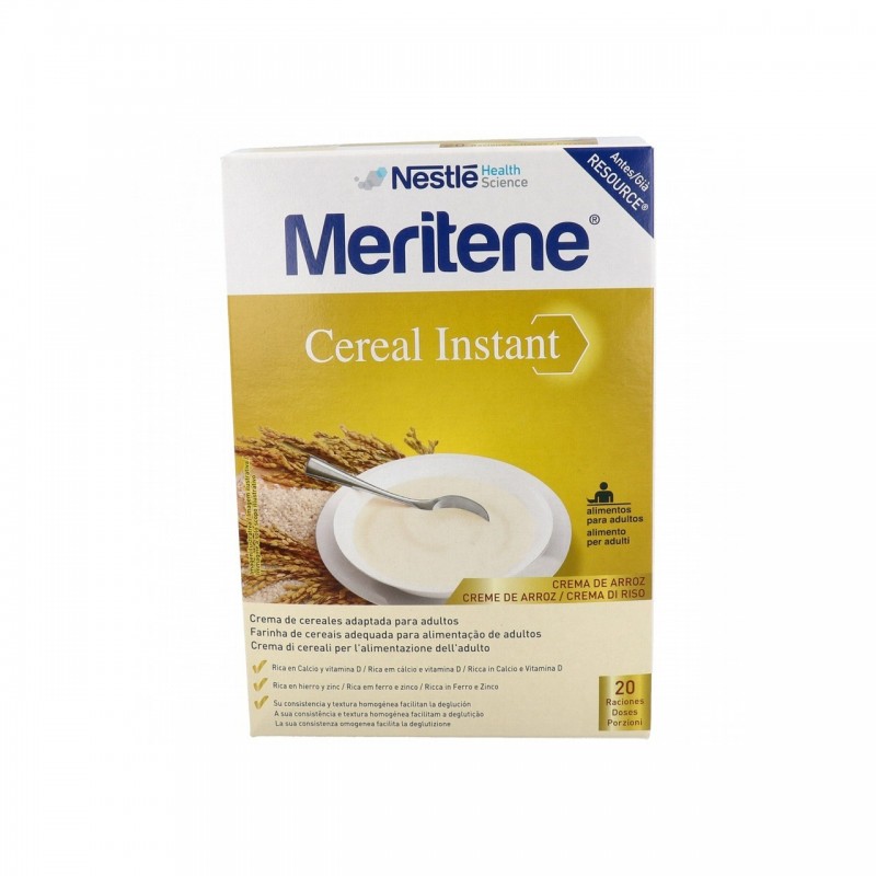 Meritene® Cereal Instant es una crema de cereales rica en hierro y vitamina D. Sin sacarosa añadida*. Con edulcorante. Es un desayuno o merienda, a base de cereales, de alto valor nutricional, excelente sabor y fácil preparación. En textura adaptada para adultos con dificultades para tragar y/o masticar alimentos que requieren una dieta blanda, con textura suave y homogénea, de fácil deglución. Se reconstituye con leche.