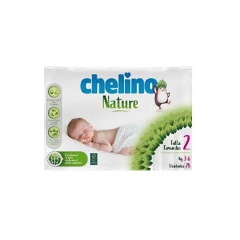Los pañales Chelino Nature®, cuidan tanto de tu bebé como del medio ambiente .La talla 2 está diseñada para bebés con un peso comprendido entre 3 y 6 kilos.Nunca antes había sido tan fácil escoger la talla ideal para tu bebé .A través de nuestro indicador podrás saber si tu bebé lleva la talla más adecuada cuando las tiras adhesivas se posicionen cómodamente en el espacio reservado a la talla. Por el contrario, si se sitúan fuera de dicho espacio, el bebé necesitará una talla más o menos según lo indicado en el pañal.