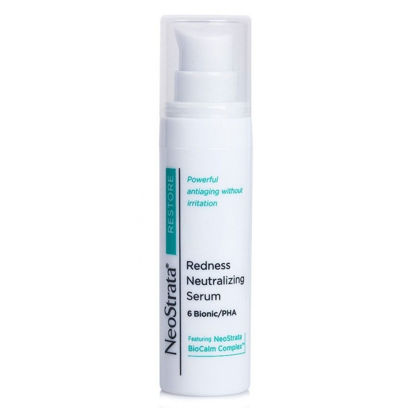 NEOSTRATA® SERUM ANTIEDAD ANTIROJECES ES UN NOVEDOSO PRODUCTO QUE FAVORECE LA REDUCCIÓN DE LÍNEAS DE EXPRESIÓN Y ARRUGAS AL MISMO TIEMPO QUE AYUDA A MEJORAR LA SUAVIDAD DE LA PIEL.SERUM FORMULADO CON EL COMPLEJO BIOCALM COMPLEX, UNA COMBINACIÓN DE INGREDIENTES DIRIGIDOS PARA ACTUAR SOBRE LOS FACTORES DESENCADENANTES DE LA APARICIÓN DE ROJECES, RESTAURA Y FORTALECE LA FUNCIÓN BARRERA DE LA PIEL, Y AYUDA A CALMAR LAS PIELES CON TENDENCIA A LA SENSIBILIDAD.