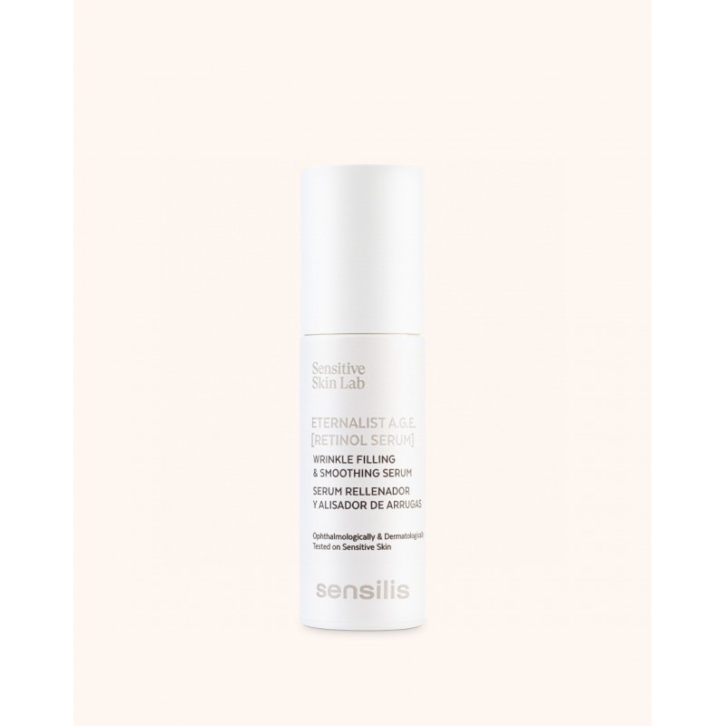 Sérum de retinol para pieles sensibles rellenador y corrector de arrugas con efecto lifting inmediato. De excelente absorción, está formulado con un 10% de Retinyl Palmitate Liposomado por su acción transformadora, un 1% de Ácido Hialurónico de peso molecular medio, por su acción hidratante y Péptidos miméticos “botox like”, que ayudan a reducir visiblemente las arrugas de expresión.¿Es para ti? Eternalist A. G. E. [Retinol Serum] es ideal para pieles grasas y adecuado para aquellas pieles que quieren iniciarse a los procesos de retinización para paliar los signos del envejecimiento o incluso para aquellas pieles que quieren un período de descanso de retinol puro.No comedogénico. Testado en 5 metales pesados.