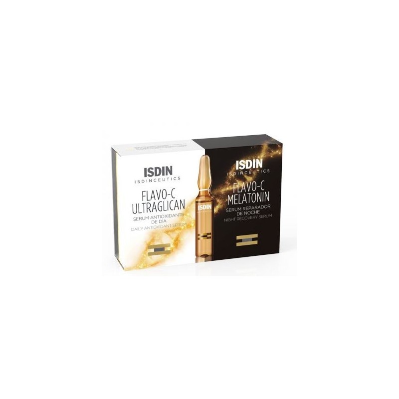 Aplica Flavo-C Ultraglican por la mañana justo después de tu rutina de limpieza facial. Con Flavo-C Ultraglican conseguirás una piel iluminada y rellenada con efecto flash a la vez que te aportará la protección necesaria contra el ataque de los radicales libres que se produce diariamente.De noche, aplica las ampollas Flavo-C Melatonin para reparar la piel del daño producido durante el día y dejarla preparada para combatir el estrés oxidativo del día siguiente.