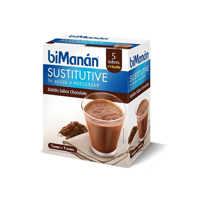 Bimanán Batido Chocolate 5 Sobres sustituye una comida* para el control de peso, con azúcares y edulcorantes. Cuenta con 12 vitaminas y minerales. Es rica en calcio y fósforo.*Los productos sustitutivos de una comida deben consumirse siempre dentro del marco de una dieta variada y equilibrada.