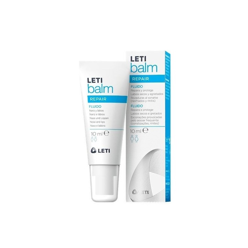 Leti Balm Fluido reparador de nariz y labios, con acción reparadora intensa, emoliente, protectora e hidratante.Está especialmente indicado para:- Cuidado de las zonas alteradas de la nariz y los labios, especialmente en épocas de catarros o resfriados.- Rozaduras que estén causadas por el uso y roce excesivo de pañuelos.- Alteraciones producidas por el frío o el viento, como los labios agrietados.Precauciones: no usar en niños menores de 3 años.
