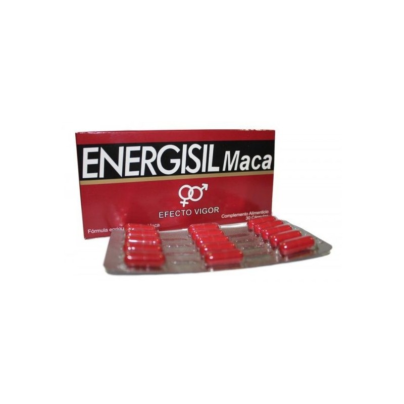 PROPIEDADESENERGISIL MACA ES UNAFRODISÍACO NATURAL QUE INCREMENTA LA LIBIDO Y POTENCIA EL DESEOSEXUAL, HACIENDOLO UN EXCELENTE COMPLEMENTO VIGORIZANTE.COMPOSICIÓNMACA:AFRODISIACO NATURAL QUE INCREMENTA LA LÍBIDO Y POTENCIA EL DESEO SEXUAL GRACIAS A SU ALTO CONTENIDO EN PROTEÍNAS Y NUTRIENTES VITALES.GUARANÁ: RECONOCIDO POR SUS PROPIEDADES TONIFICANTES Y ESTIMULANTES. AYUDA A RECUPERAR EL APETITO SEXUAL.GINSENG:AUMENTA LA RESISTENCIA DEL ORGANISMO, GRACIAS A SUS PROPIEDADES ENERGÉTICAS. ACTÚA COMO RESTAURADOR DEL DESGASTE FÍSICO E INTELECTUAL.L-ARGININA:AMINOÁCIDO QUE INTERVIENE EN LA PRIMERA FASE DE LA RESPUESTA ERECTIVA Y POR ACCIÓN DE LA ENZIMA OXIDO SINTETASA SE CONVIERTE EN ÓXIDO NÍTRICO PUDIENDO AUMENTAR LA CAPACIDAD ERÉCTIL.VITAMINAS:VITAMINA A, C, D, E Y VITAMINAS DEL GRUPO B.MINERALES:ZINCINDICACIONESAYUDA A AUMENTAR EL DESEO SEXUAL EN EL HOMBRE Y LA MUJER. INDICADO EN LA FALTA DE APETITO SEXUAL POR CANSANCIO, EXCESO DE TRABAJO, ESTRÉS….PRESENTACIÓNENVASE CONTENIENDO 30 CÁPSULASPOSOLOGÍASE RECOMIENDA INGERIR 1 CÁPSULA AL DÍA. EN CASO DE SENTIR SUFICIENTE EFECTO PASAR A DOS 2 CÁPSULAS AL DÍA.